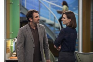 But when Sorkin fails, he always find a way to soften the blow, usually by recognizing his failures and having a character on the show point them out. This makes those failures look like they were all part of the plan. Here, Brian Benner points out to MacKenzie just how unlikely it was that the RNC would allow this kind of debate to occur, but, although we may initially agree with him , we quickly find that we are not meant to sympathize with his perspective that Will is acting out of “hubris.” Instead, we see that Brian’s outrage is really just masking his lingering feelings for MacKenzie. This is a shame because it undercuts the merits of his criticism. Essentially, Will has cheapened his show for nothing, but at least he knows how to make lemons out of lemonade. Will dumps the Casey Anthony story and leads with the debt ceiling showdown, a move that gives him the look and feel of a noble man going down with the ship. He knows he will lose his viewers again, and Leona will be in a strong position to fire him. The only thing that can save him now is the NSA whistleblower. I suppose we’ll be hearing more about this next week.